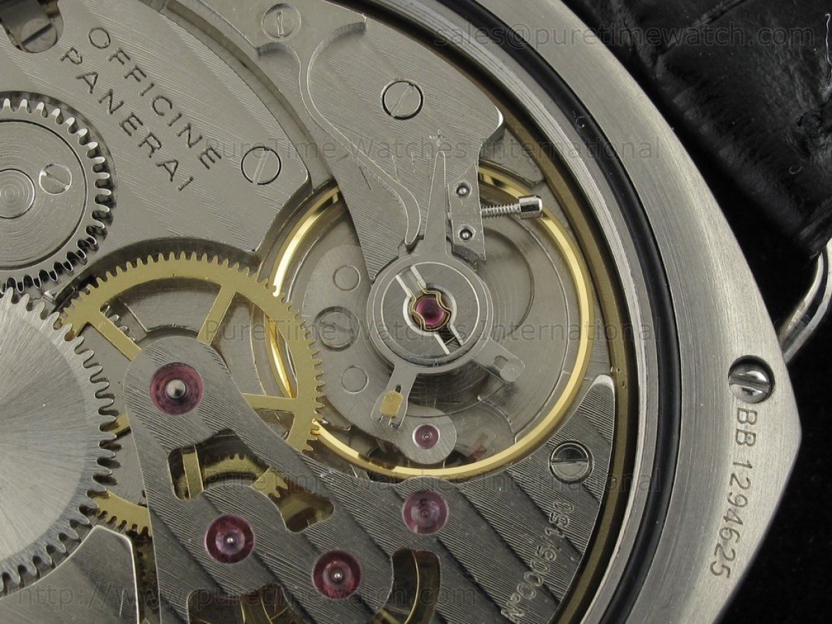 Movement modified UNITAS-6497 hand-winding movement at 21600vph, movement decorated to genuine look