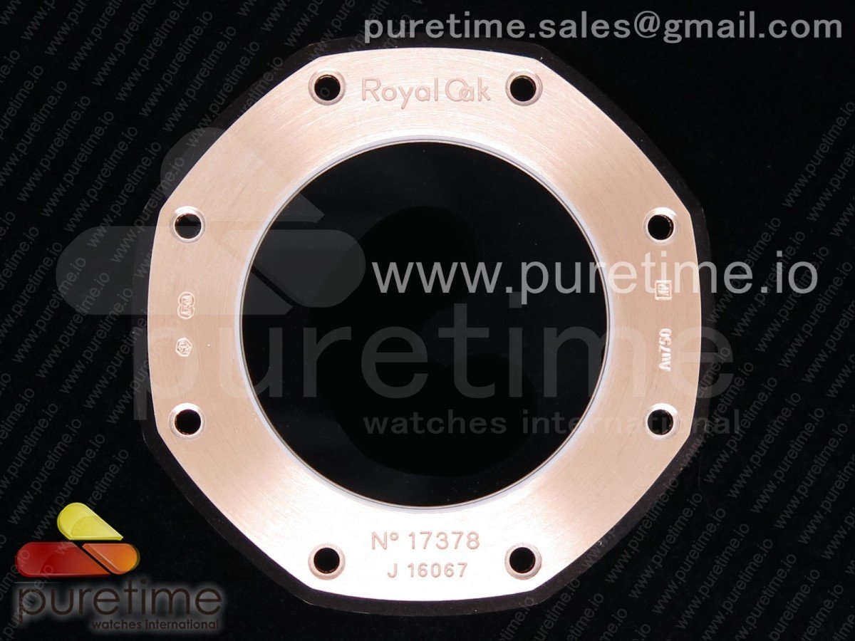 Bezel Updated 18K rose gold plated brushed/polished stainless steel bezel (same brushed texture and construction as genuine) with recessed bezel screws as per genuine
